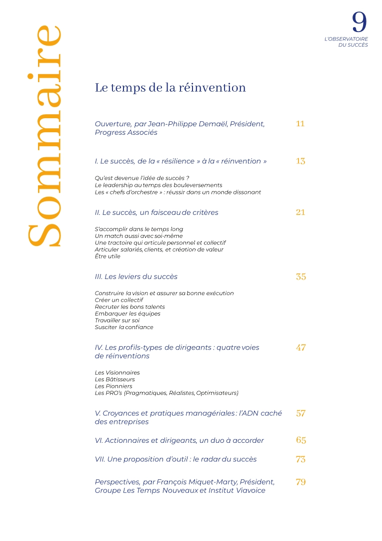 L’Observatoire du Succès est établi par le cabinet Progress Associés avec l’institut Viavoice. Un indicateur qui résulte d’un sondage quantitatif auprès de 1.000 salariés et de 150 dirigeants et cadres dirigeants, enrichi par 34 entretiens qualitatifs.